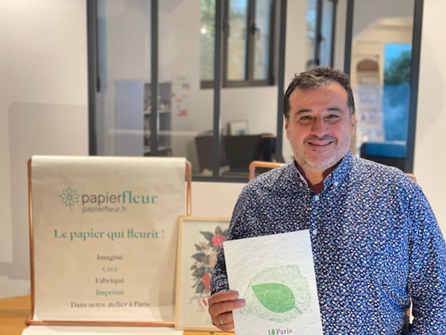En 2015, alors qu’il est déjà engagé dans des pratiques écoresponsables, il crée Papier Ensemencé (papier-ensemence.fr), la marque pionnière en France du papier qui fleurit.
