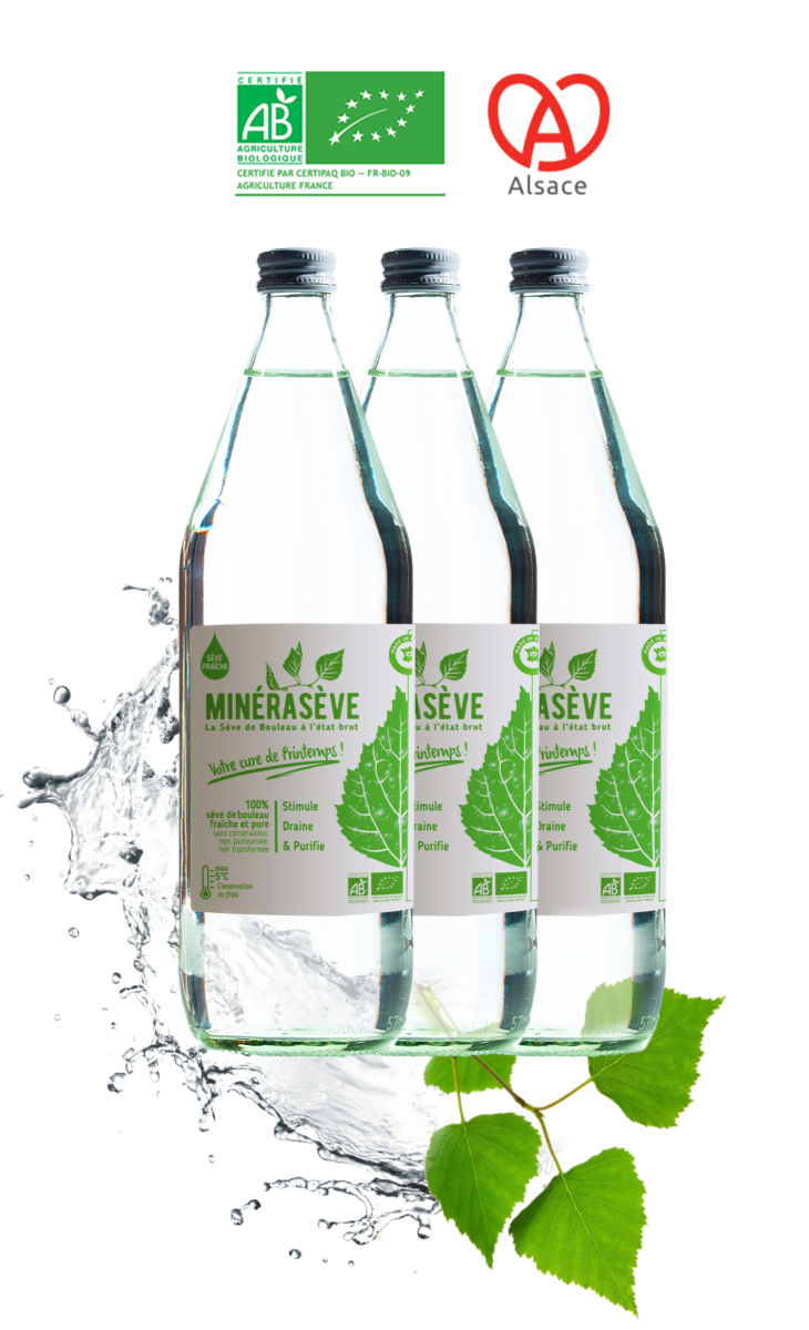 Minérasève est installé dans le Haut-Rhin, au pied du massif du ballon d’Alsace. La marque récolte sa sève de bouleau dans des forêts situées à une altitude de 600 à 900 mètres, à l’écart de toutes sources de pollution.
