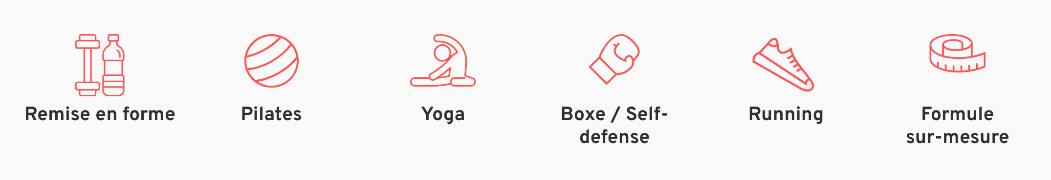 Le catalogue de disciplines de ProTrainer est très riche : remise en forme, musculation, préparation physique, boxe, self défense, course à pied, Pilates, yoga, ou encore sport santé.