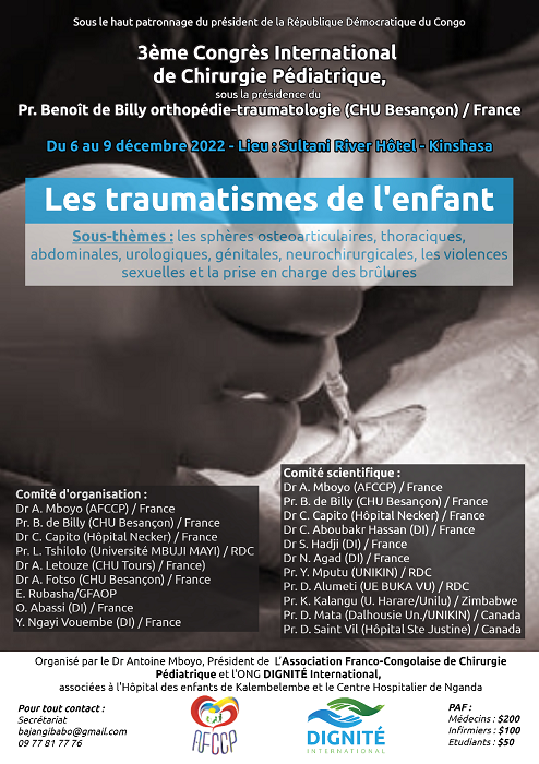 Dans ce contexte, DIGNITÉ International et son partenaire l’AFCCP organisent un Congrès qui va contribuer à améliorer l’accès des enfants aux soins de chirurgie pédiatrique en République Démocratique du Congo.