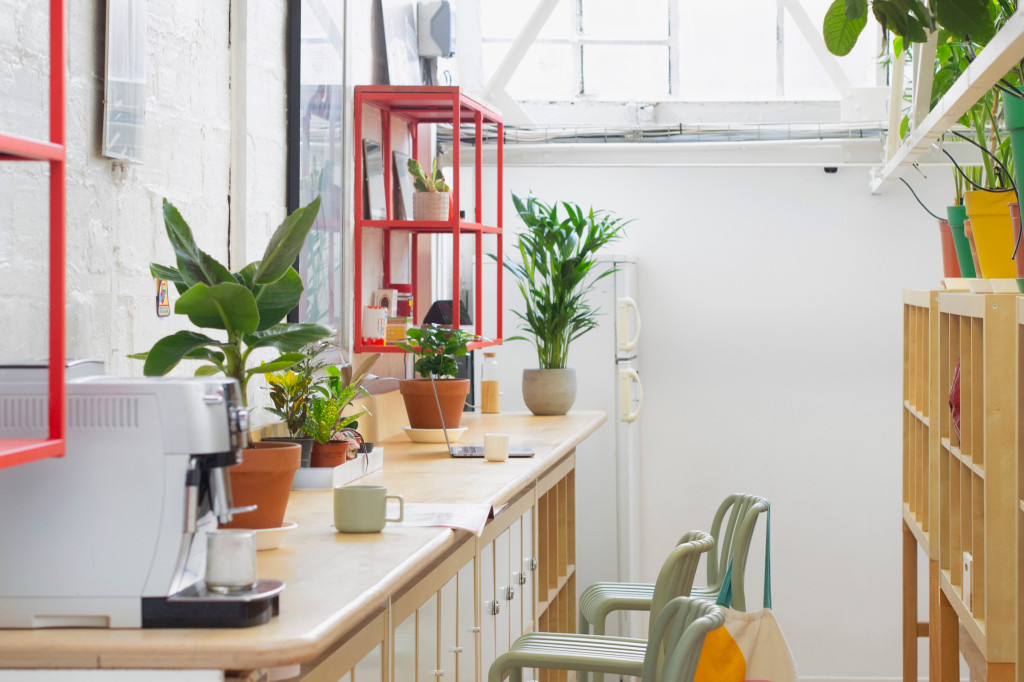- Ambiance : l’atmosphère du lieu, grâce à la verrière, aux plantes et à l’aménagement, permet un cadre de travail agréable et bienveillant. Enfin, atout non-négligeable pour les propriétaires d’animaux, il peut être envisageable d’emmener son animal à quatre pattes.