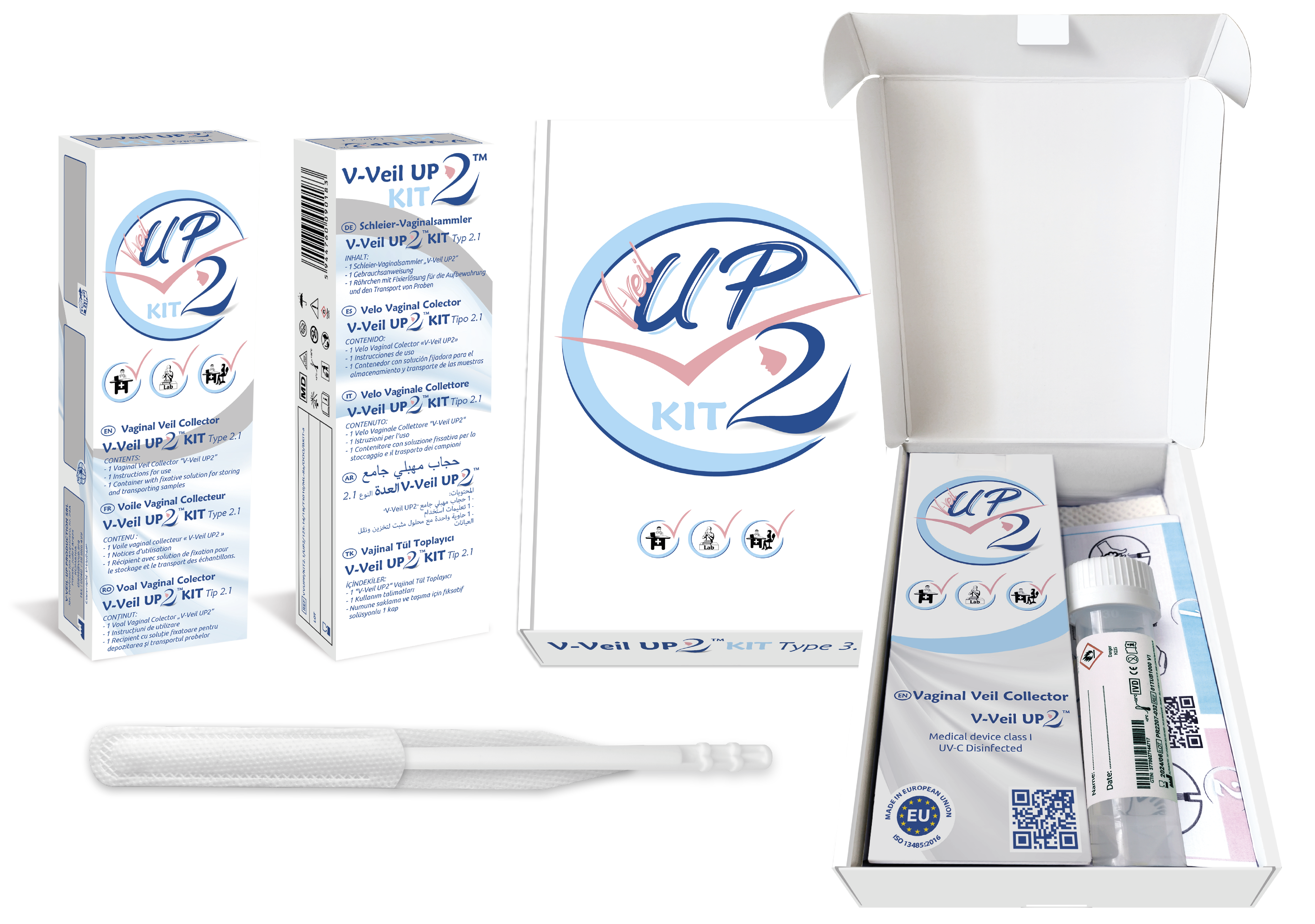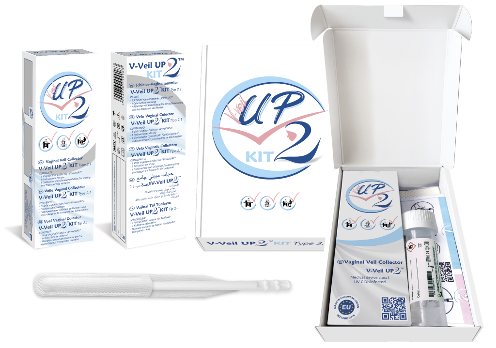 Aujourd’hui, la nouveauté est que V-Veil-Up Production souhaite que le Voile Vaginal Collecteur « V-Veil UP2 » ait vocation à être massivement utilisé pour les campagnes de prévention du Col de l’utérus garce à la création de KIT avec Voile Vaginal Collecteur « V-Veil UP2 » et son liquide de transport et tout le nécessaire règlementaire pour être envoyé par la poste.