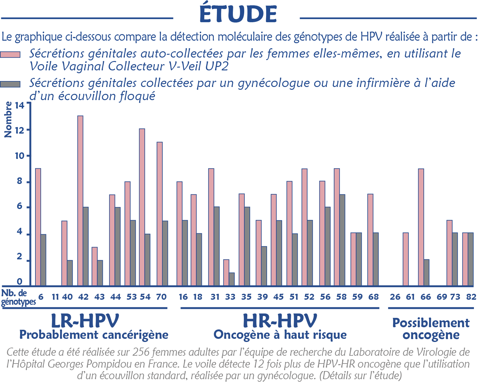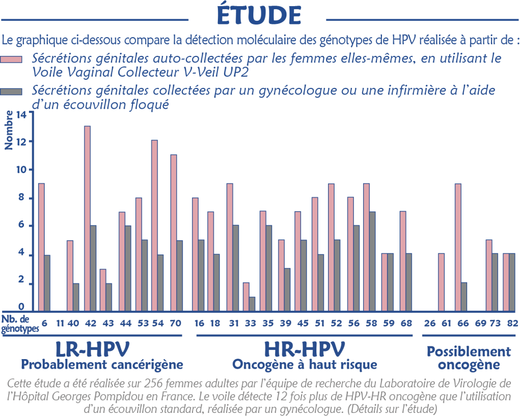 Simple et sécurisant, il respecte l’intimité de toutes les femmes tout en offrant une efficacité inégalée : il double la capacité de détection des génomes par rapport aux méthodes classiques (étude réalisée par l’Hôpital Georges Pompidou à Paris).