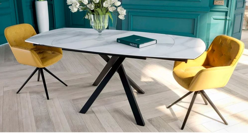 Question mobilier, la firme parie sur des produits haut de gamme avec des matériaux de qualité. C’est le cas de la table en céramique marbre Gizeh. Chic et design, elle est aussi pratique puisqu’elle permet de se convertir en toute simplicité pour accueillir de 4 à 6 convives.