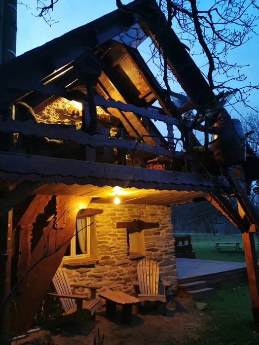 Aidée par un ami et équipée d’une volonté à toute épreuve, elle passera 7 ans à imaginer et construire ses gîtes atypiques. 70% de bois et 10%, de pierre : voilà la formule. L’endroit doit être esthétiquement unique au monde et proposer une capacité d’accueil presque sans égale dans la région.