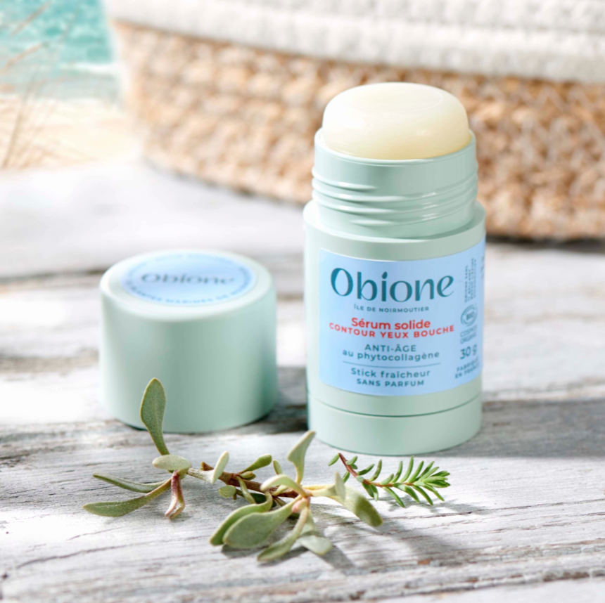 Elle a ainsi lancé la première crème solide bio en stick à la texture fraiche et douce. Ce soin visage sans équivalant introduit une nouvelle gestuelle beauté, réinventant la cosmétique solide. Obione poursuit sa démarche d’innovation en lançant cette année un second stick : un sérum solide anti-âge avec une nouvelle texture gel plus glissante pour le soin spécifique de la zone fragile du contour des yeux et de la bouche.