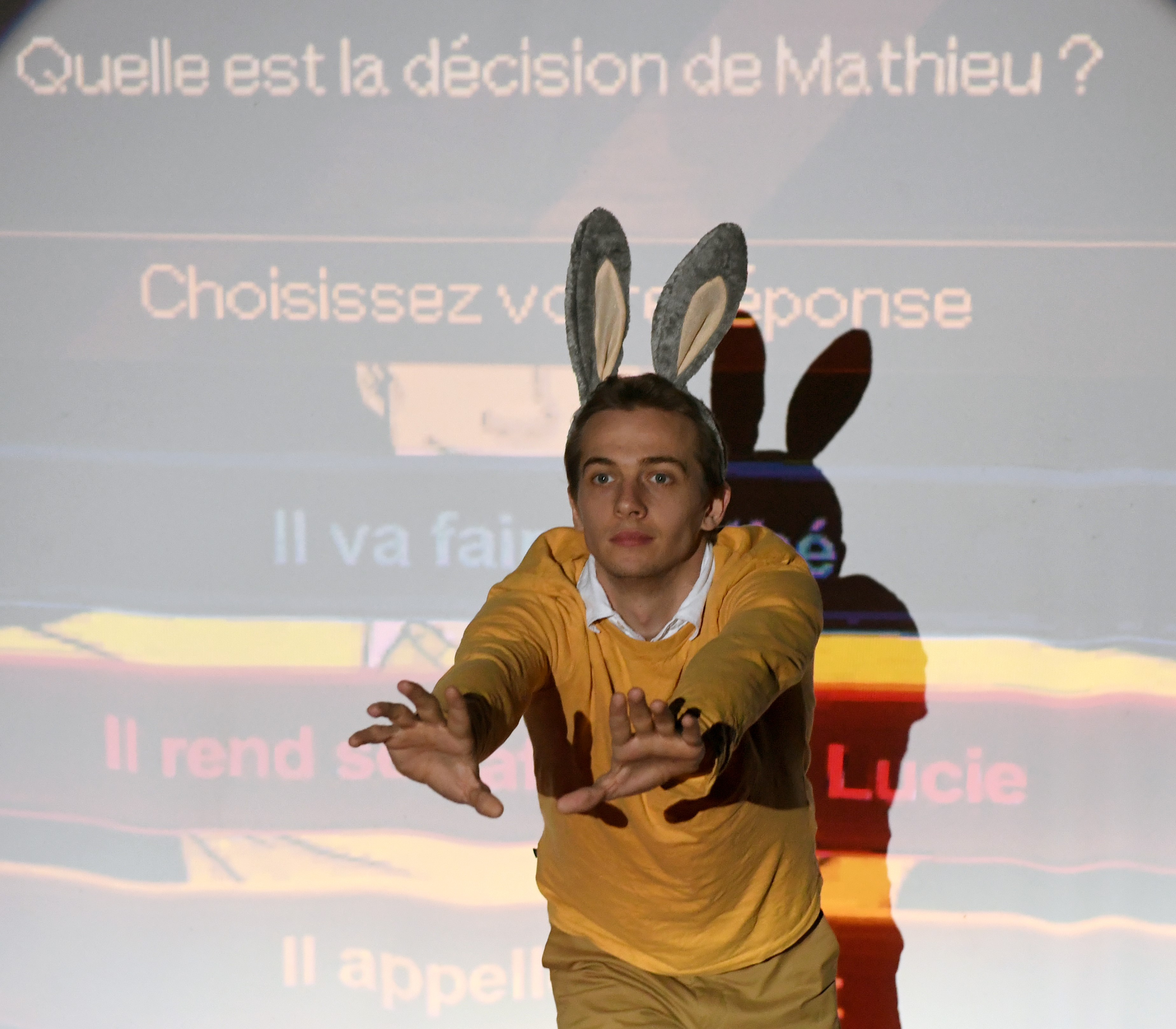 Tout au long du spectacle, grâce à un principe astucieux de votation, le public doit interagir sur l’intrigue et sur les actions des trois personnages : Mathieu, Lucie et Ernest. Les acteurs se transforment ainsi en marionnettes dont les spectateurs tirent les ficelles. À chaque représentation, la pièce est différente, grâce aux milliers de scénarios possibles. « On pourrait presque prendre un abonnement ! », souligne l’auteur.