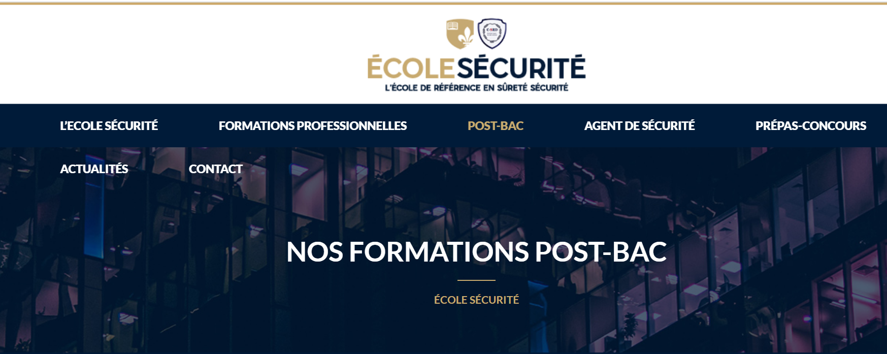 - Des formations post-bac : le BTS MOS (Management opérationnel de la sécurité, bac +2) et le Bachelor B3 RUOS (Responsable d’unité opérationnelle de la sécurité, bac +3) ;