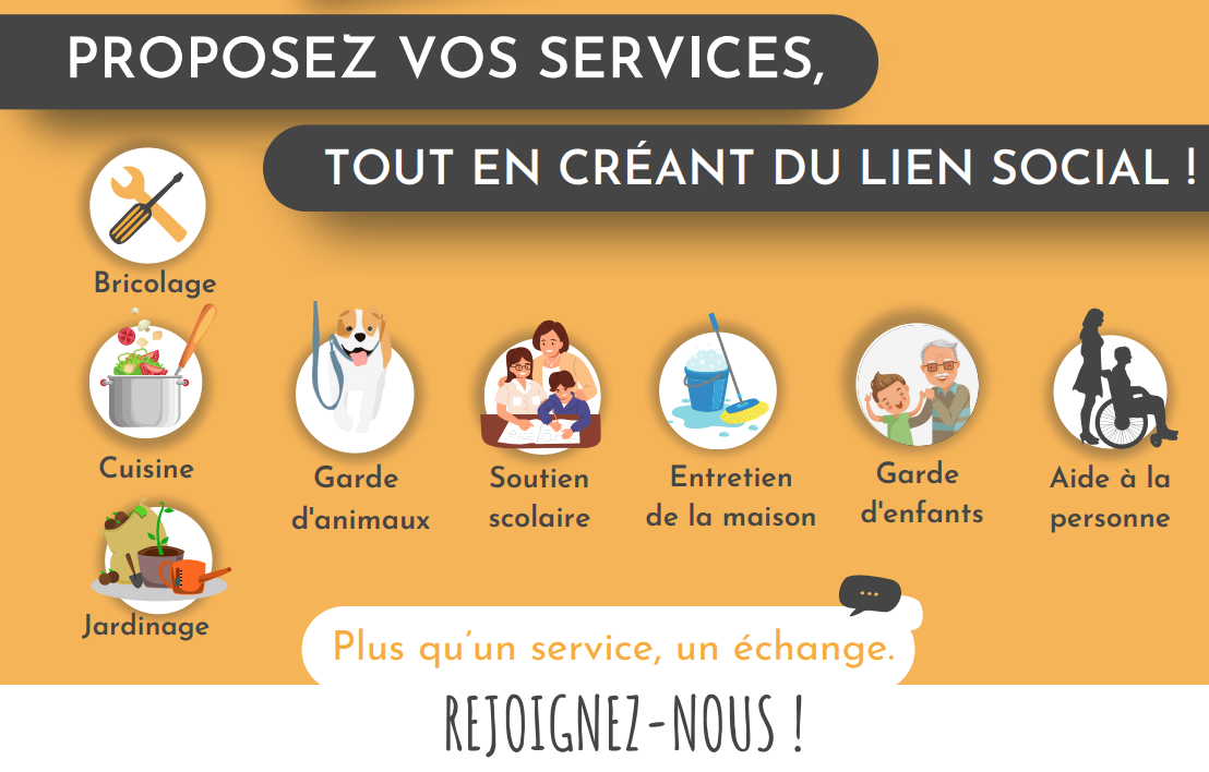 Les jeunes retraités, que l’on appelle les SuperActifs, peuvent proposer des services aux particuliers : garde d’enfants, petits bricolages, jardinage, cuisine, garde d’animaux, soutien scolaire, entretien de la maison ou encore aide à la personne, etc.