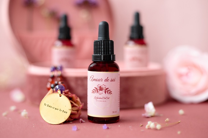 Elle présente une première gamme de 4 élixirs floraux : Amour de Soi, Blessures du Féminin, Confiance en Soi et Hypersensibilité.