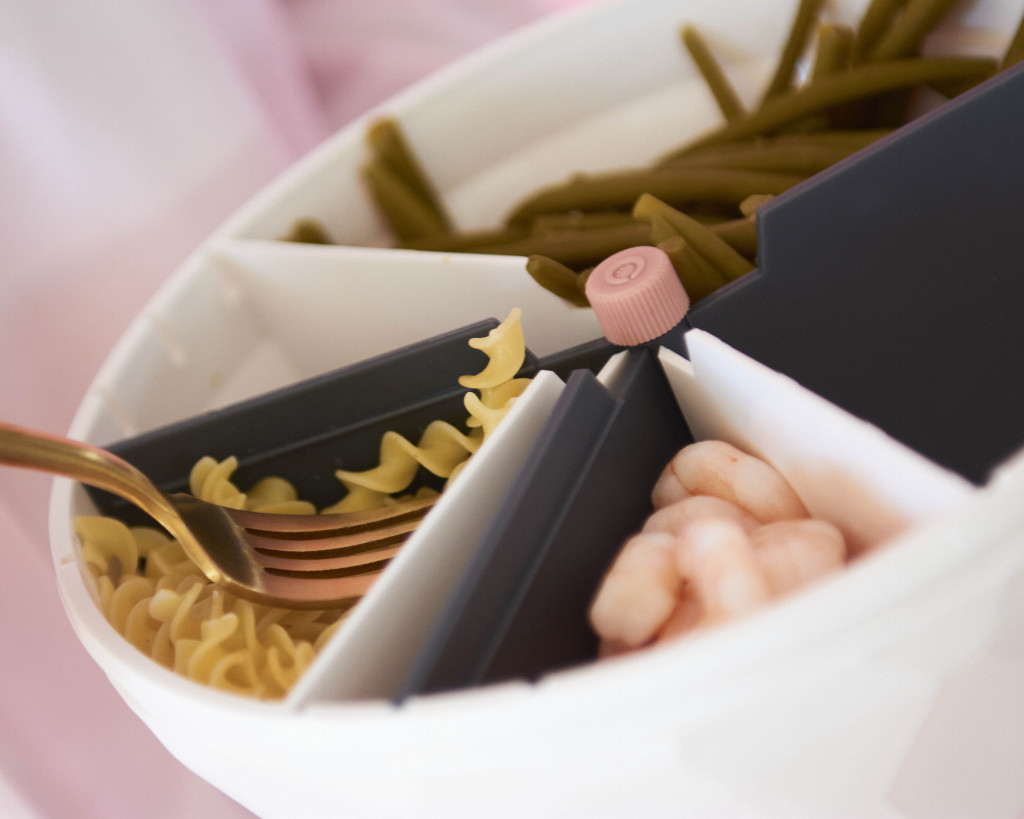 Pour décomplexifier la nutrition, maju a mis au point un produit breveté, unique sur le marché : un bol doté de trois compartiments qui permet de respecter facilement les quantités de protéines, de féculents et de légumes.