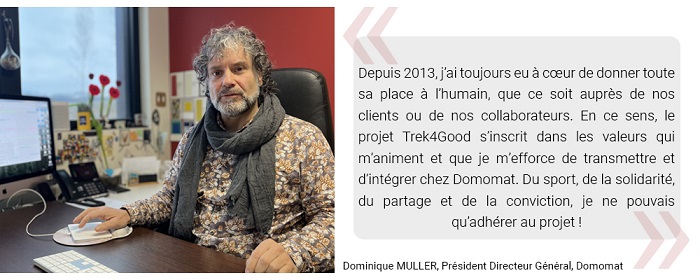 Alors lorsqu’ils ont rencontré Nathalie Bondetti Lafrie, l’une des 4 femmes à l’origine du projet Trek4Good, ils ont été enthousiasmés par la philosophie de ce challenge ambitieux. Il fait d’ailleurs écho à l’un des objectifs que s’était fixé Domomat pour 2023 :