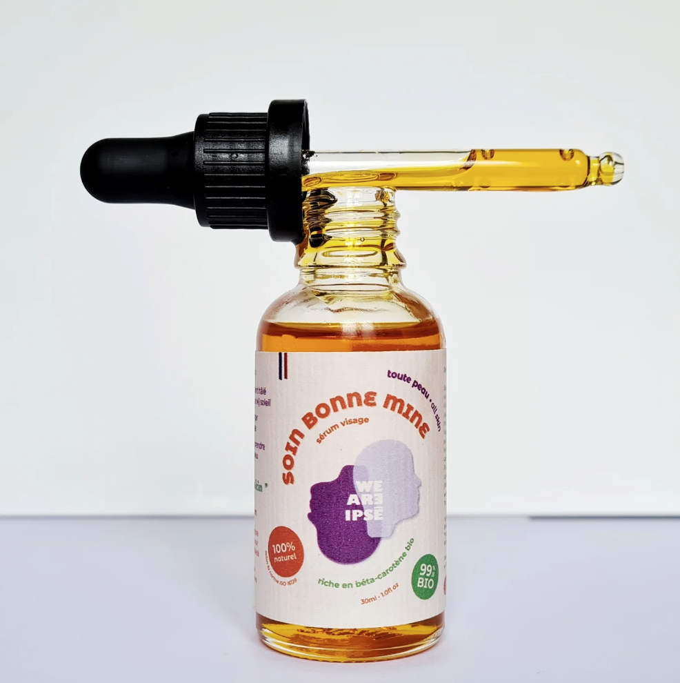 We are Ipsē se donne pour mission de démocratiser les soins naturels de qualité. Son soin Bonne mine est un soin composé d’une huile, vierge pressée à froid, naturellement riche en bêta-carotène qui est l’huile d’argousier et qui n’est pas issue d’un macérat, comme c’est le cas des concurrents avec l’huile de carotte : fabriquée à base d’huile de tournesol et d’extrait de carotte.