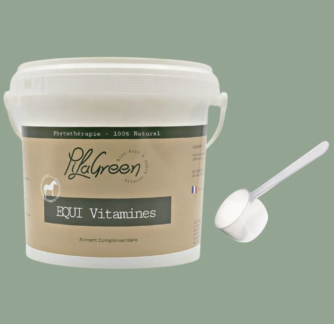 L’Équi Vitamines est un complément alimentaire riche en vitamine C pour les chevaux, poulains, poneys et ânes. Composé de poudre de cynorhodon, de persil, de pissenlit et de lithothamne, il pallie les éventuels manques nutritionnels en vitamines, minéraux et oligoéléments.