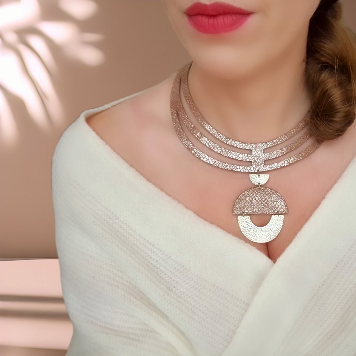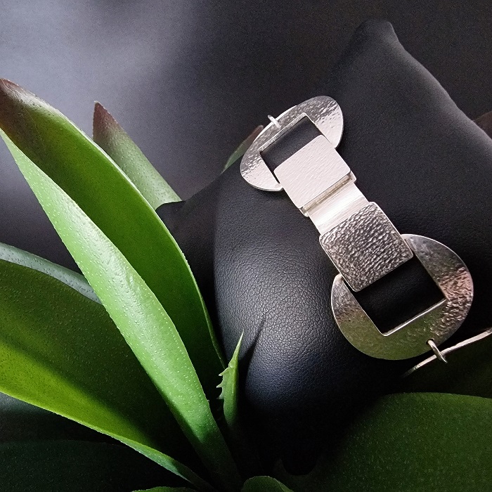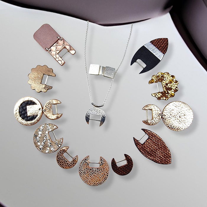 Les bijoux sont notamment réalisés à partir d’argent 925 recyclé, de chutes de cuir de luxe et de Piñatex, une matière innovante, éthique et écoresponsable.