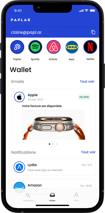 Le concept est simple : il suffit de télécharger l’app, de créer une adresse mail Paplar puis de la communiquer en magasin ou en ligne. Elle va ainsi devenir l’adresse mail de référence pour ne plus recevoir de spams.