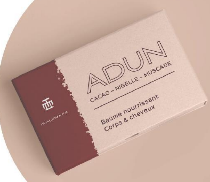 Proposé sous la forme d’un pain solide, le baume ADUN est composé de beurre de cacao brut, nourrissant, antioxydant et réparateur, d’huile de nigelle tonifiante et assouplissante, de muscade régénératrice et d’extrait de vanille.