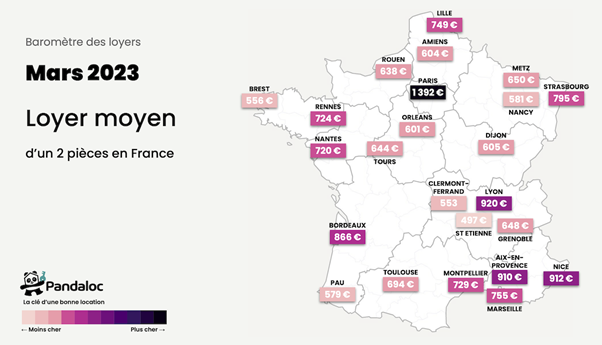 Après avoir analysé plus de 50 000 annonces sur les 3 derniers mois, Pandaloc.com, le site qui chamboule la location immobilière, analyse les loyers des villes françaises en mars 2023.