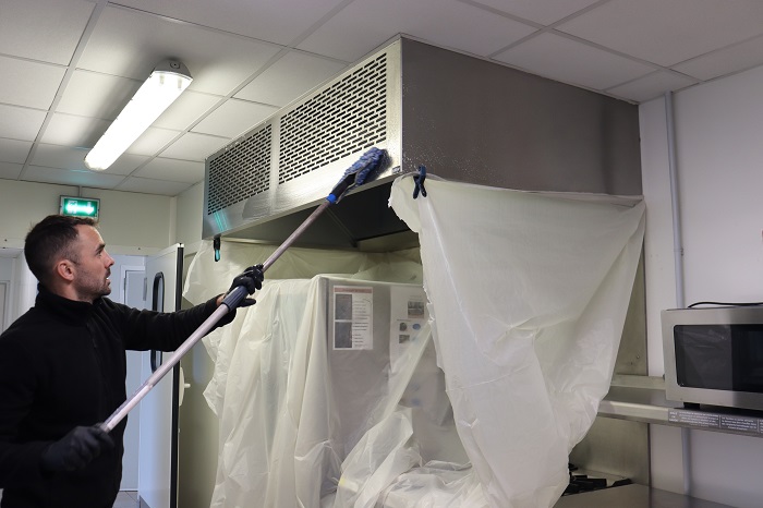 - Dégraissage et entretien des hottes de cuisine : entretien et dégraissage des systèmes d’extraction d’air, qu’il s’agisse de hottes de restauration, de hottes Sorbonne ou de gaines de four de boulangerie. Mise en place de destructeur d’odeur, nettoyage, contrôle et remplacement (filtres et obturateurs, moteurs, trappes de visite, courroies, etc.) ;