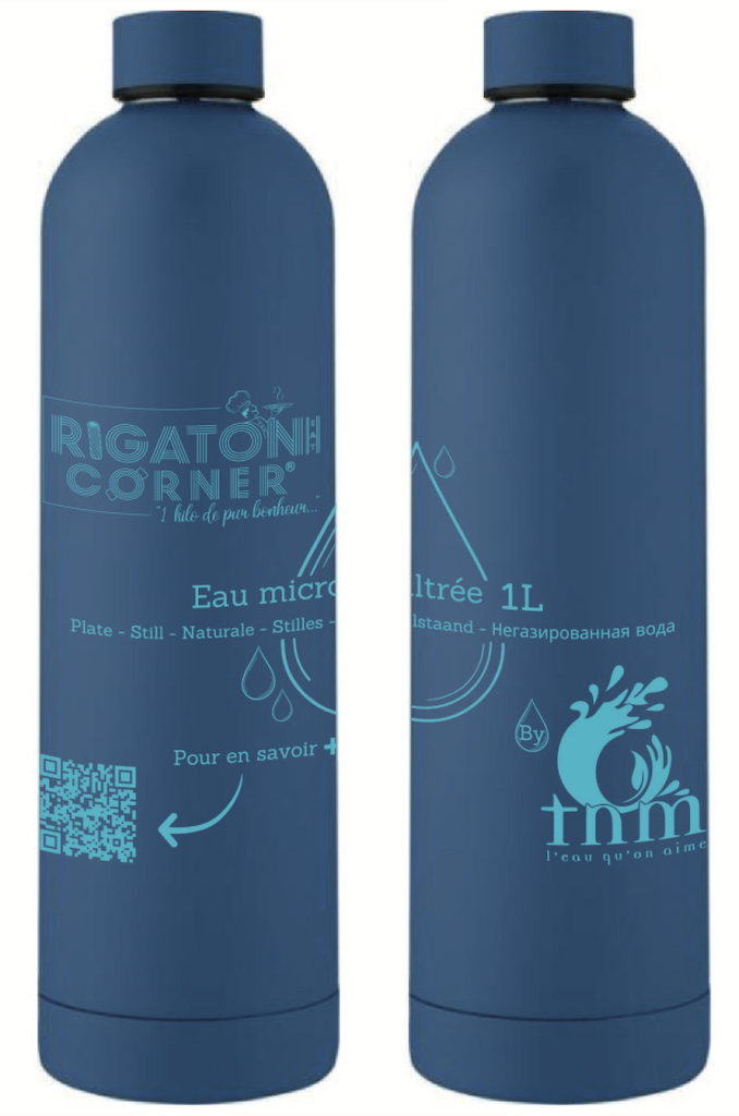 Jolies et intelligentes, ces bouteilles arborent le logo de TnM, ainsi qu’un QR Code grâce auquel les convives des restaurants peuvent s’informer sur les solutions TnM. Quand un convive devient à son tour client de TnM, le restaurant devient son parrain et reçoit des chèques cadeaux.