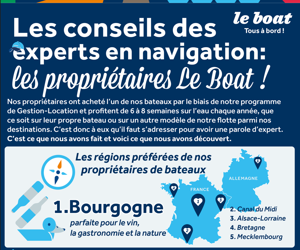 Pour permettre aux vacanciers de profiter pleinement de leur croisière, Le Boat a travaillé sur un article 100% conseils. Il a été demandé à tous nos propriétaires du Programme de Gestion-Location de partager leurs meilleurs conseils, comment être un bon plaisancier et comment passer de belles vacances.