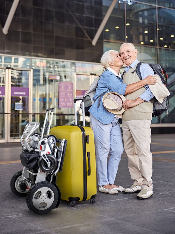 En couple, le fauteuil roulant électrique permettra au conjoint plus fragile de continuer à sortir tout en étant autonome avec l’autre conjoint, afin de les protéger tous les deux.