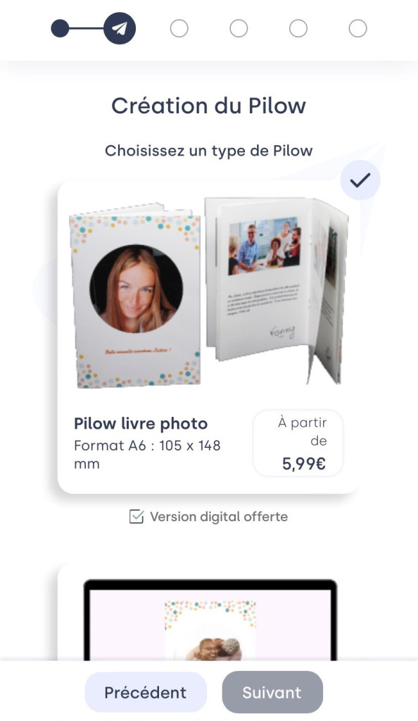 - Le Pilow papier. Le Pilow est imprimé sur papier ; il prend la forme d’un livre photo au format A6 (105 sur 148 mm). Pour toute commande d’un Pilow papier, le Pilow digital est offert.