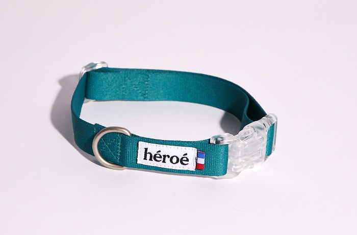 Dans ce contexte, Florian Cons Beltran crée Héroé, la nouvelle marque d’accessoires pour chiens conçus à partir de bouteilles en plastique recyclées, faits en France à la main et solidaires (1 repas offert à une association pour chaque commande).