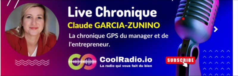 Claude Garcia-Zunino est chroniqueuse et animatrice sur Cool Radio, la radio qui fait du bien, fondée à Nice par Cyril Darmon entrepreneur et dirigeant d’entreprises. La chronique GPS du manager et de l’entrepreneur intitulée “Humain d’abord, Humain encore” est proposé à tous les auditeurs à 13h15 le lundi et le vendredi en rediffusion, ainsi qu’une émission “Confidences comme une évidence”, le jeudi à 20h30.
