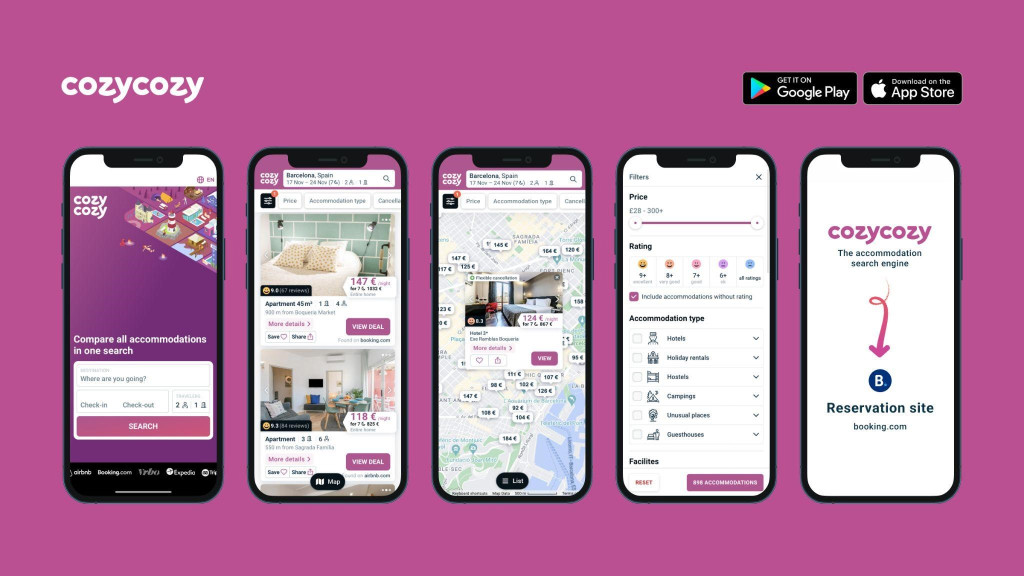 Les utilisateurs ont le choix entre plus de 20 millions d’annonces. Les filtres pratiques de Cozycozy permettent aux voyageurs d’affiner leur recherche par emplacement, prix, avis et commodités, afin qu’ils puissent facilement trouver tout ce qu’ils veulent en un seul et même endroit.