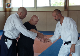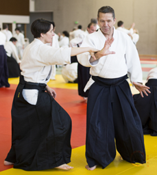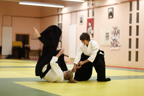 Il n’y a pas de combat en Aïkido, il n’y a pas d’adversaire non plus, mais des partenaires et cela change tout. L’objectif de la pratique est la recherche du déséquilibre de son partenaire pour désamorcer une situation de tension et ce dans la bienveillance et le respect de l’intégrité physique des uns et des autres.