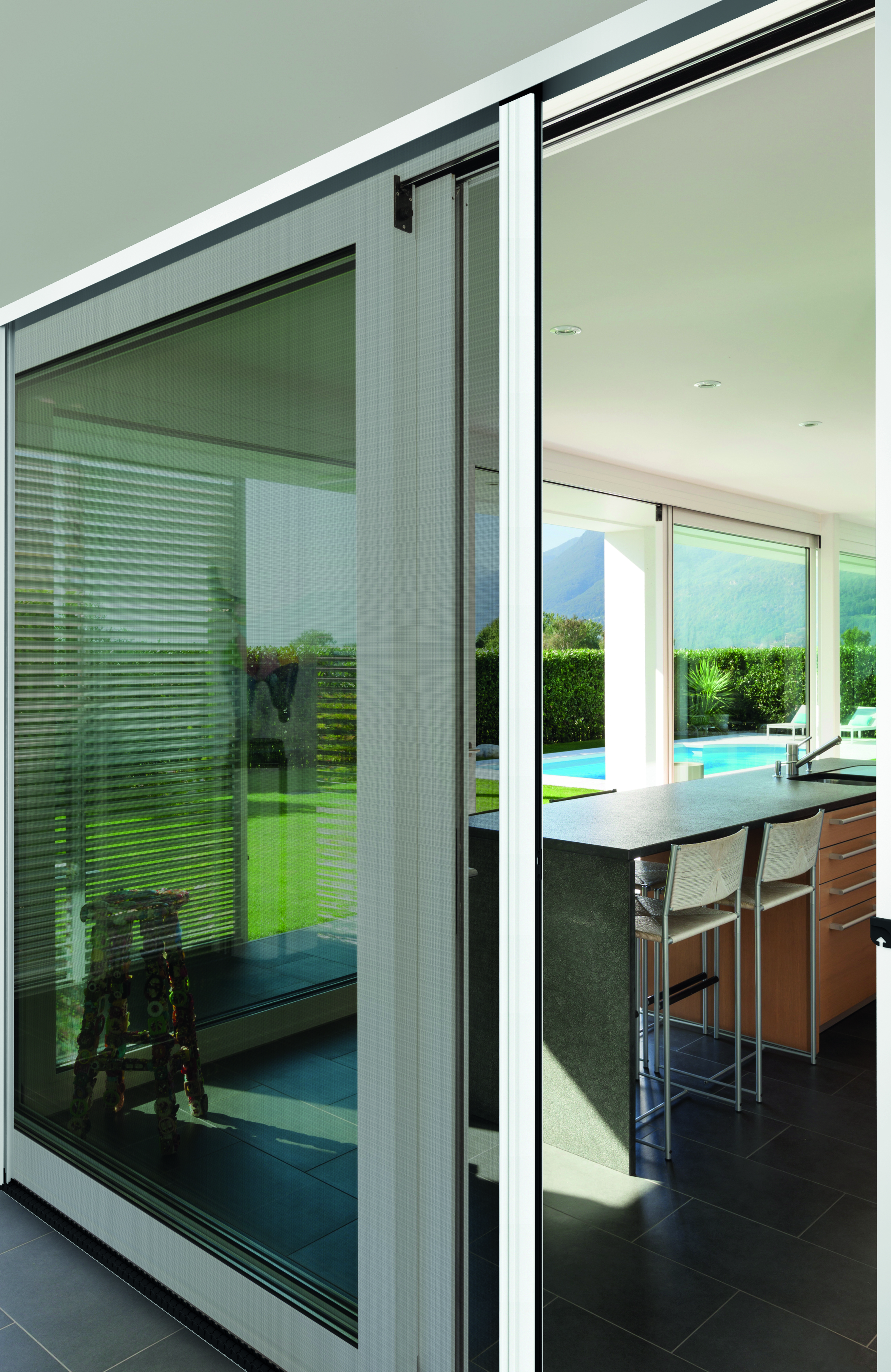 • La moustiquaire latérale enroulable. Elle équipe les grandes fenêtres et les baies vitrées, et coulisse simplement dans leur encadrement.