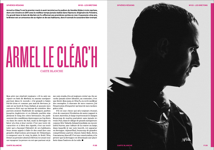 Car Sphères Région, c’est aussi une plongée dans toute la diversité des territoires. Les lecteurs et lectrices vont notamment apprécier la carte blanche écrite par Armel Le Cléac’h sur son rapport à la Bretagne, le grand entretien avec le chanteur Hervé, l’immersion chez François Gabart à MerConcept et l’analyse de la brûlante question du rattachement de la Loire-Atlantique.