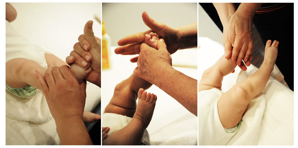Bébé peut quant à lui se prélasser dans le berceau d’Aux P’tits Soins ou se faire masser par la psychomotricienne Elisabeth Dardart qui apprend ces gestes bien-être aux mamans.
