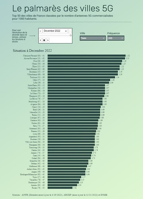 - Le Top 50 de la 5G dans les grandes villes françaises : https://lemon.fr/la-5g-dans-les-grandes-villes-francaises-clermont-ferrand-aix-en-provence-et-nice-les-mieux-couvertes/