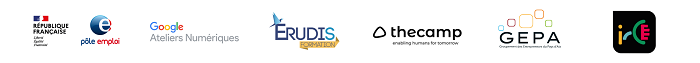 L’E.E est financée par Pôle emploi et organisée avec le soutien de Google Ateliers Numériques, Erudis Formation, le GEPA, l’IRCE, THE CAMP.