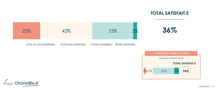La dernière étude réalisée par l’IFOP pour Charlotte K, le collectif d’infirmières qui aide les IDE à réussir à évoluer professionnellement, jette un pavé dans la mare en révélant que 64% des infirmiers sont insatisfaits de leur situation professionnelle actuelle (vs 26% pour l’ensemble des salariés français).