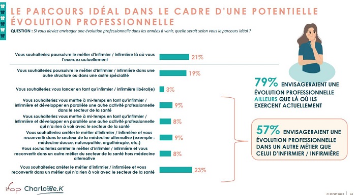 Pourtant, ils sont près de 6 sur 10 à vouloir exercer un autre métier, dont 23% qui souhaitent même quitter le secteur de la santé.