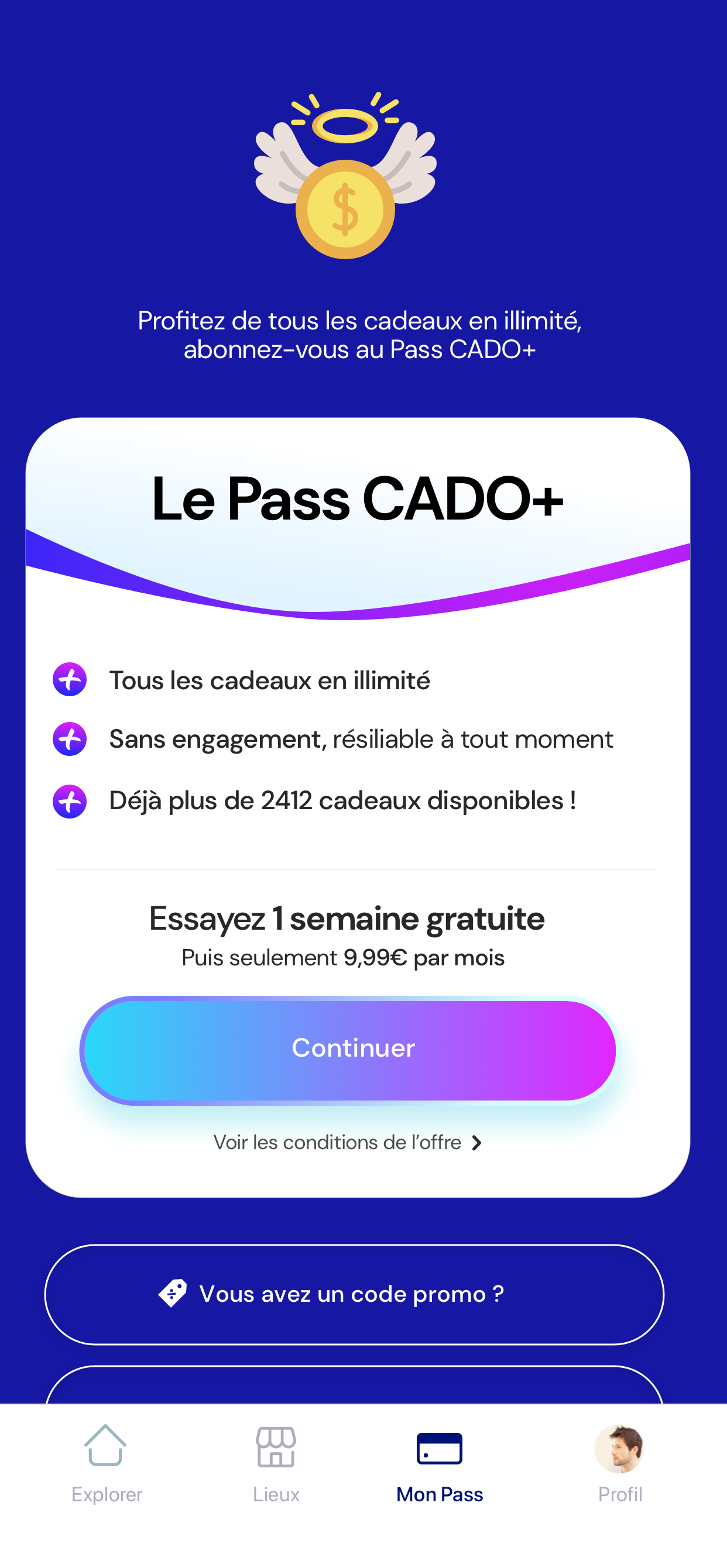 Puis, les utilisateurs n’ont plus qu’à se rendre dans l’établissement de leur choix et à se faire plaisir. Pour finaliser leur offre, il leur suffit de présenter l’application CADO+ et de faire valider par le staff par une simple pression un bouton VALIDER (un call action se déroule alors et des confettis en mouvement descende sur l’écran) afin d’être sur que celui-ci est bien détenteur de l’abonnement du PASS Cado+