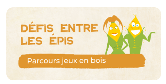 - Défis entre les épis : parcours jeux en bois. Le labyrinthe est ponctué de différentes étapes, où des jeux en bois géants attendent les visiteurs. Ces jeux de stratégie, d’équilibre, d’adresse, de chance et d’opposition sont autant de défis amusants qui préparent petits et grands à l’ultime énigme, qui leur permettra de sortir du champ de maïs. Le parcours est accessible pour tous (gratuit pour les enfants de moins d’un mètre).