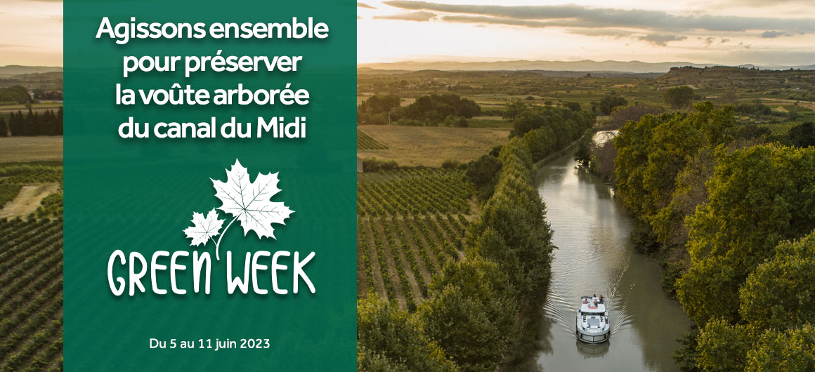 Du 5 au 11 juin, pendant la #GreenWeek, Le Boat reversera 20 euros à la Mission Mécénat de Voies navigables de France à chaque fois qu’un client réservera une croisière sur le canal du Midi.