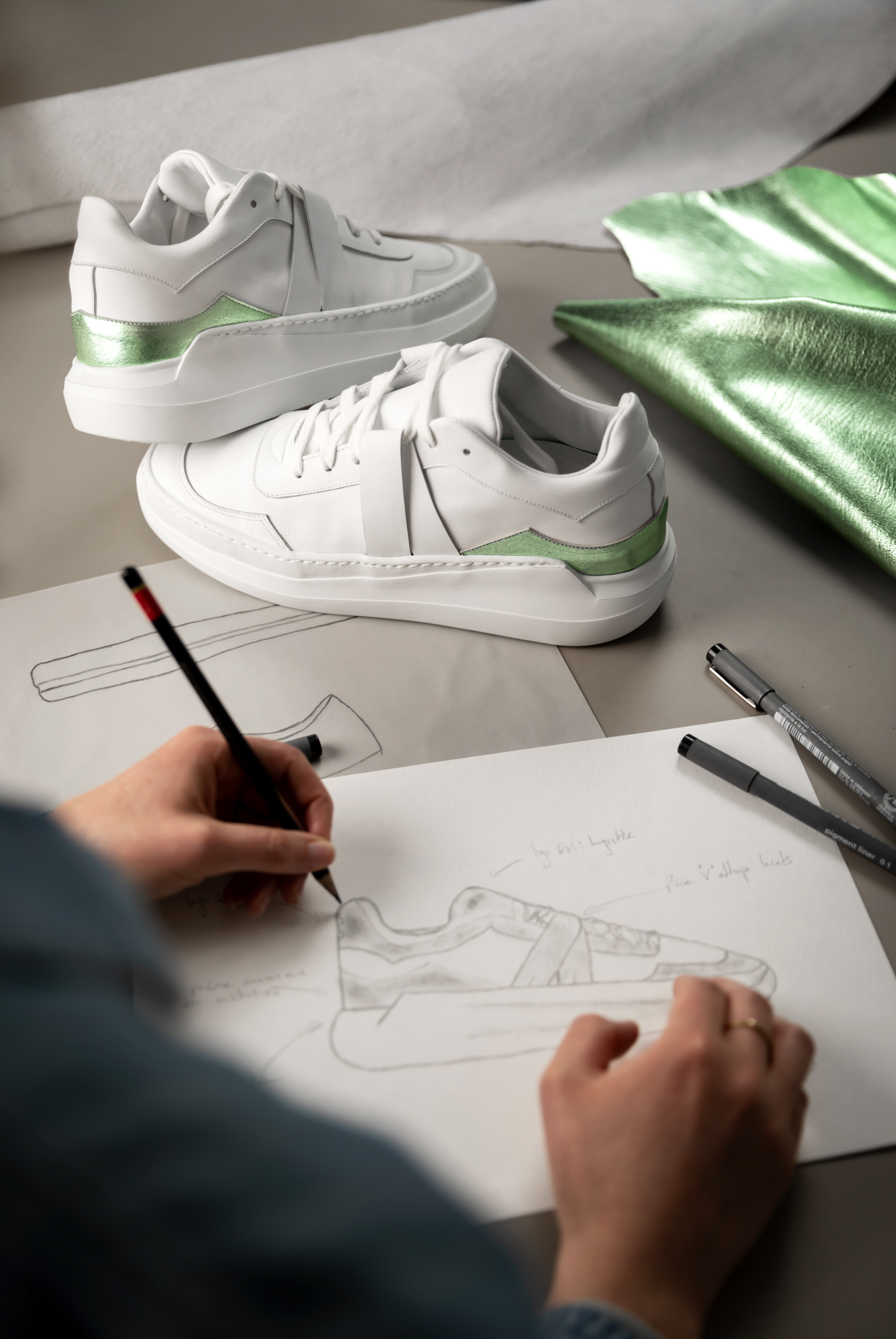Ensuite, ils créent entièrement à la main leur premier prototype de sneakers. Puis, le couple perfectionne son savoir-faire : la passion de Dimitri et de Solène pour la chaussure était devenue leur métier.