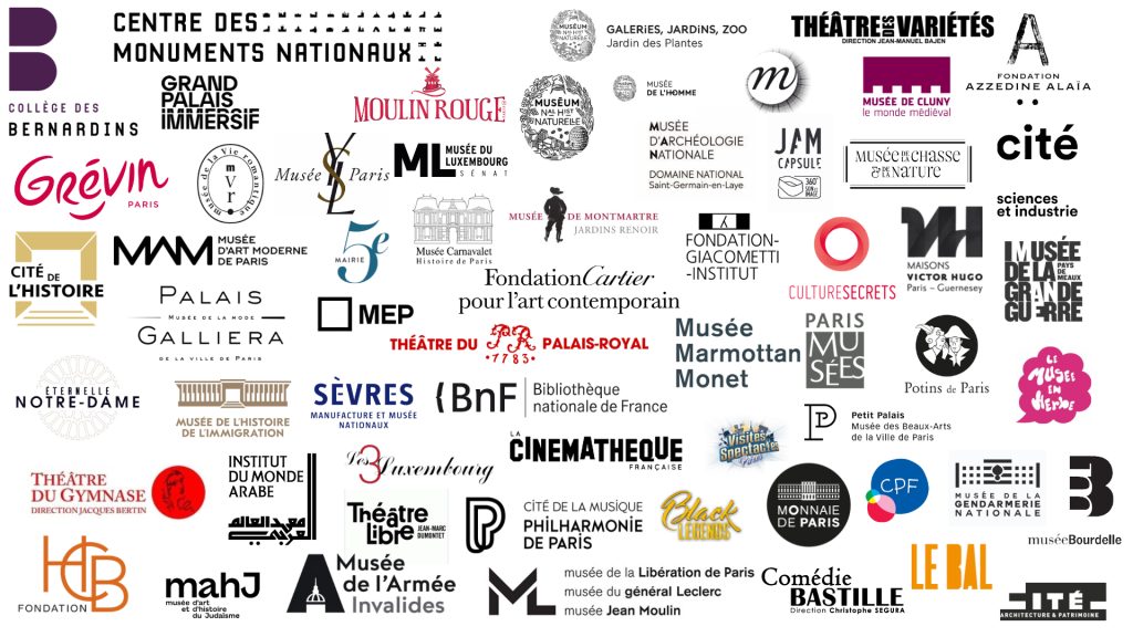 50 d’entre elles ont déjà répondu présent, dont le Petit Palais, le Musée d’art moderne, la Monnaie de Paris, le musée Grévin, la Fondation Cartier, le Grand Palais Immersif, le Museum d’Histoire naturelle ou encore la toute nouvelle Cité de l’Histoire.