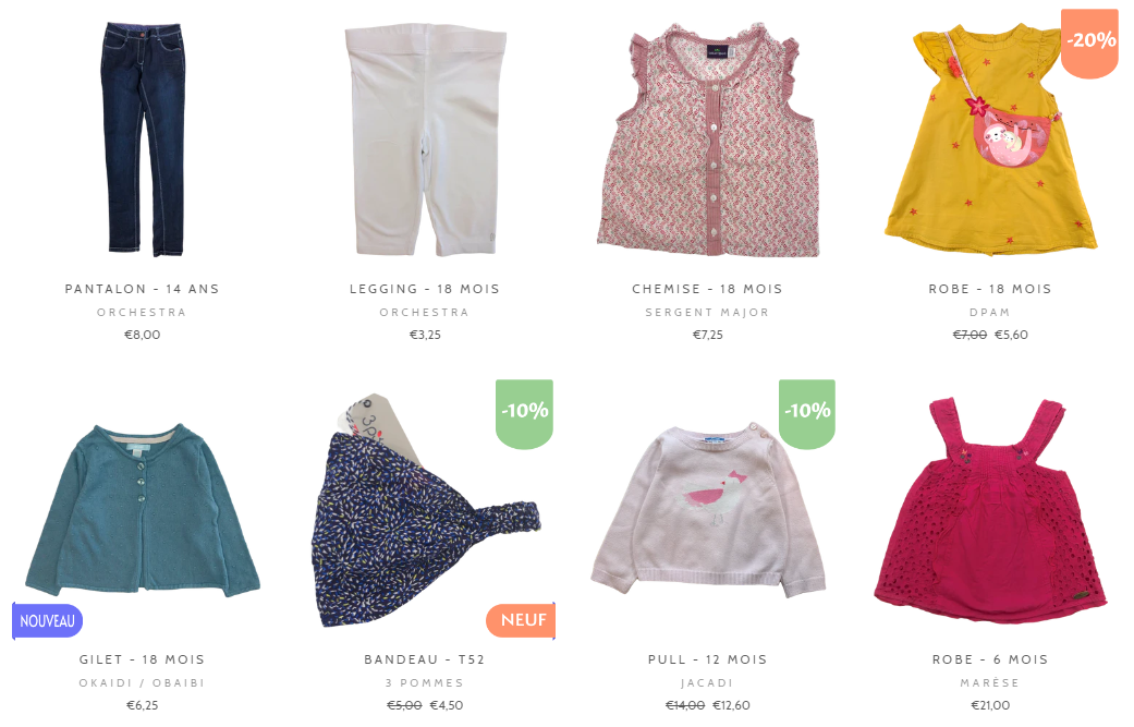 Ce fonctionnement permet de garantir la qualité des articles, de rassurer les parents et de sécuriser l’achat de seconde main. La boutique propose les plus grandes marques de vêtements pour enfants, de Tape à l’Oeil à Tartine et Chocolat en passant par Petit Bateau, Jacadi et Cyrillus.