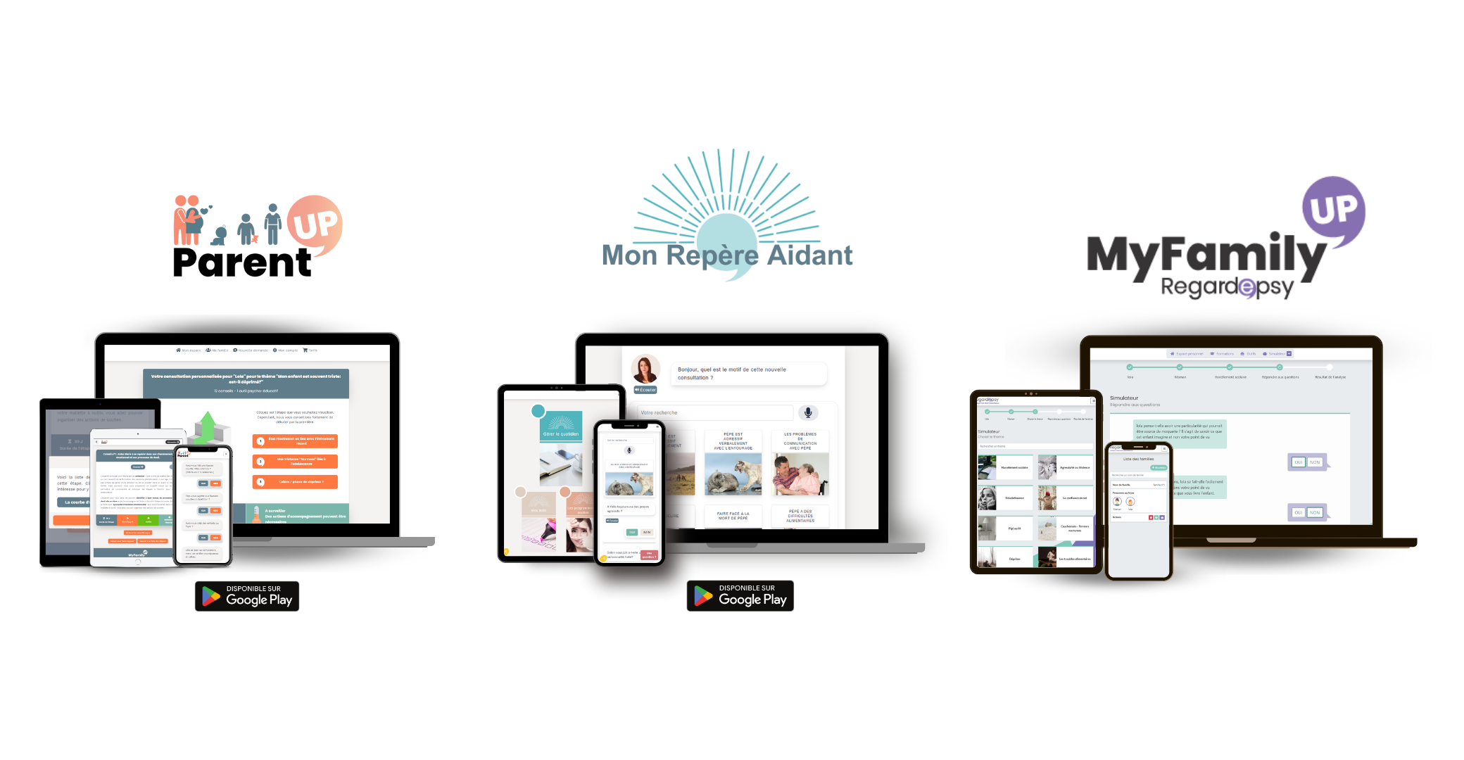 My Family Up a développé plusieurs applications : Parent’UP, destinée aux parents et futurs parents, Mon Repère Aidant, pour les aidants de personnes âgées, et le simulateur de comportement RegardePsy, qui soutient les professionnels au contact des enfants. Ces applications sont accessibles depuis tout type de support.