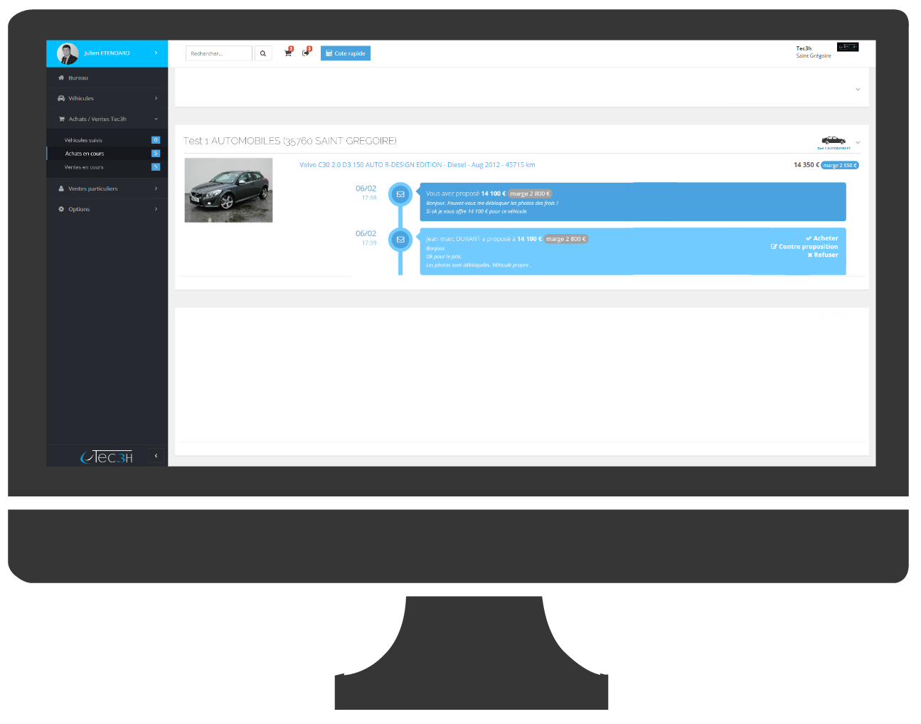 Nous avons développé TEC3H avec pour objectif d’offrir aux professionnels un outil inédit, leur permettant de proposer toujours plus de véhicules à leurs clients et ainsi augmenter leur ventes VO. Avec TEC3H, nous souhaitons rassembler et reconquérir la relation entre le client particulier et le vendeur, redonner de la performance et de la crédibilité aux services commerciaux, inverser la courbe des transactions.