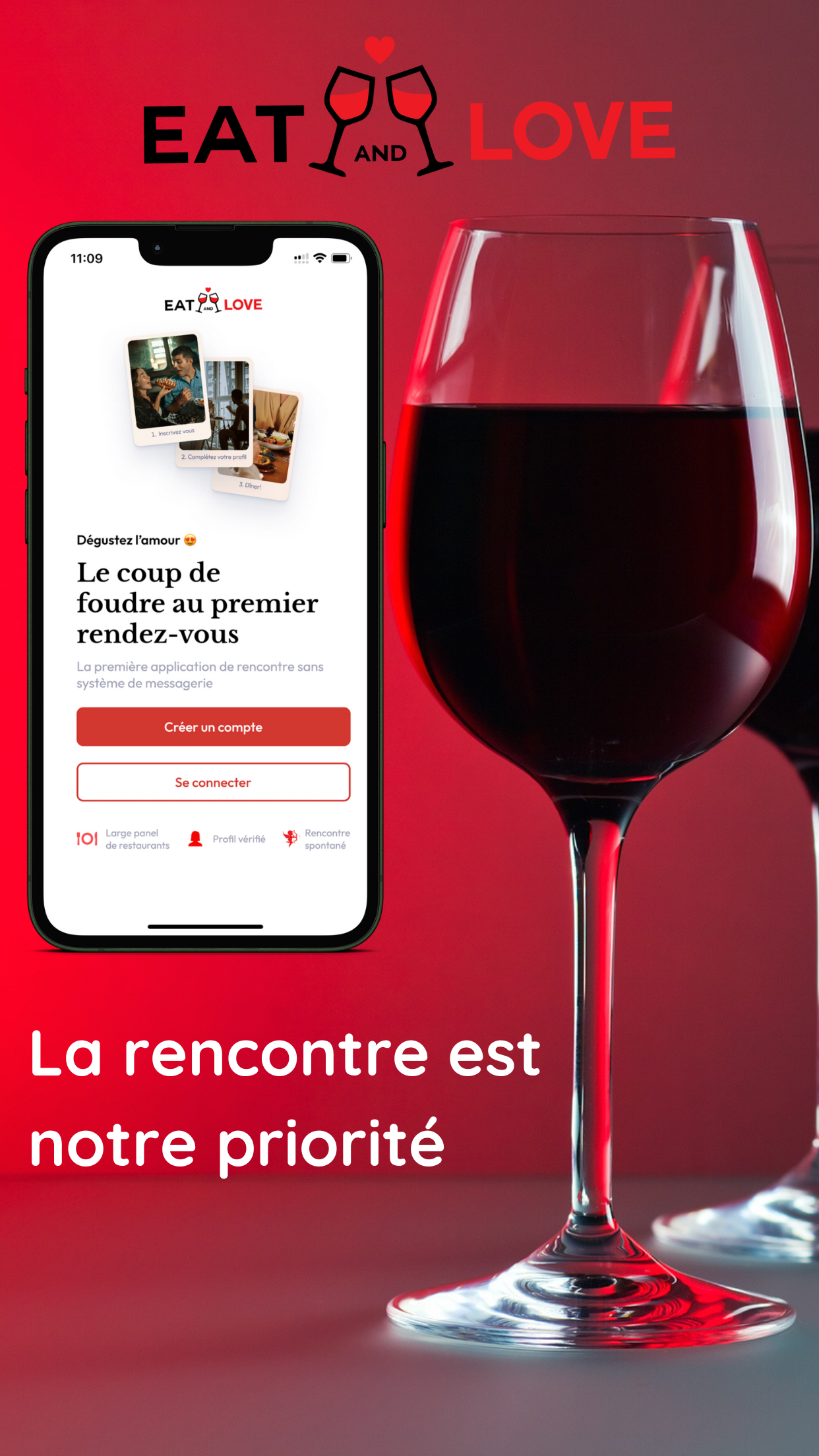 - Une application unique sur le marché. Eat and Love est la seule application de rencontre sans messagerie et qui propose des rencontres au restaurant.