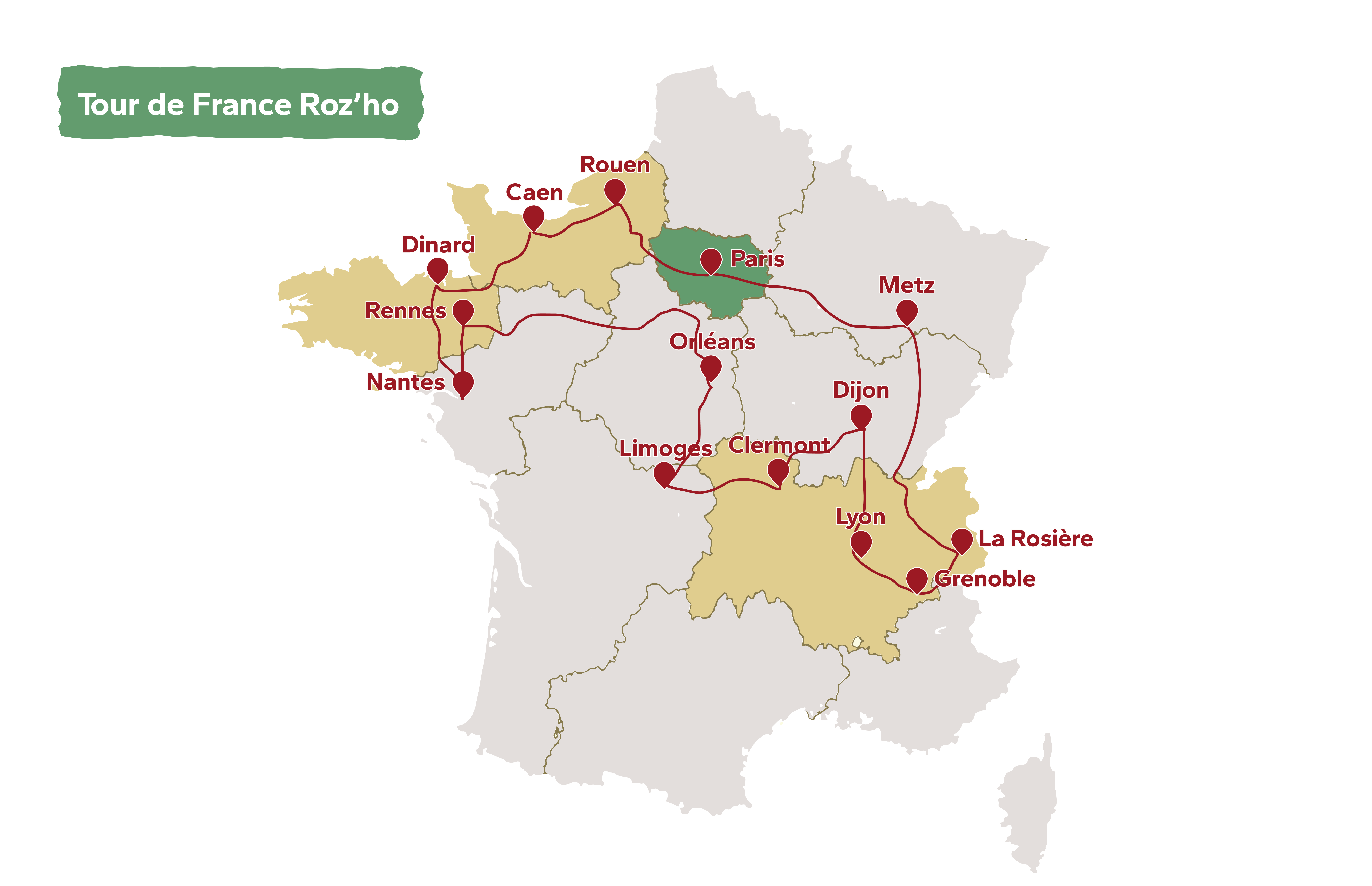Ce Tour de France est également l’occasion pour Roz’ho de mettre en lumière son déploiement dans trois nouvelles régions : Normandie, Bretagne, et Auvergne-Rhône-Alpes.