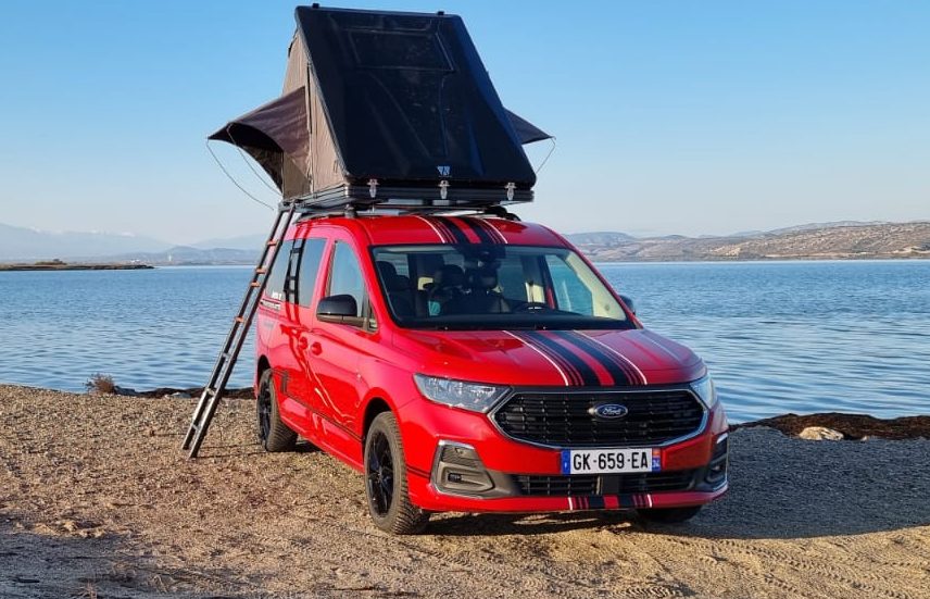 Il est conçu sur la base d’un Ford Transit Custom, et propose de nombreux aménagements de série : table salon intérieur/extérieur, toit relevable et lit supérieur, chauffage stationnaire avec kit d’altitude, isolation 5 mm multicouches, circuit électrique avec batterie auxiliaire, circuit eau chaude, prise extérieure, meuble de cuisine complet doté d’une multitude de rangements et un tableau de commande électronique centralisé permettant de contrôler l’éclairage des différentes zones, les niveaux d’eau propre et sales et la capacité de la batterie.