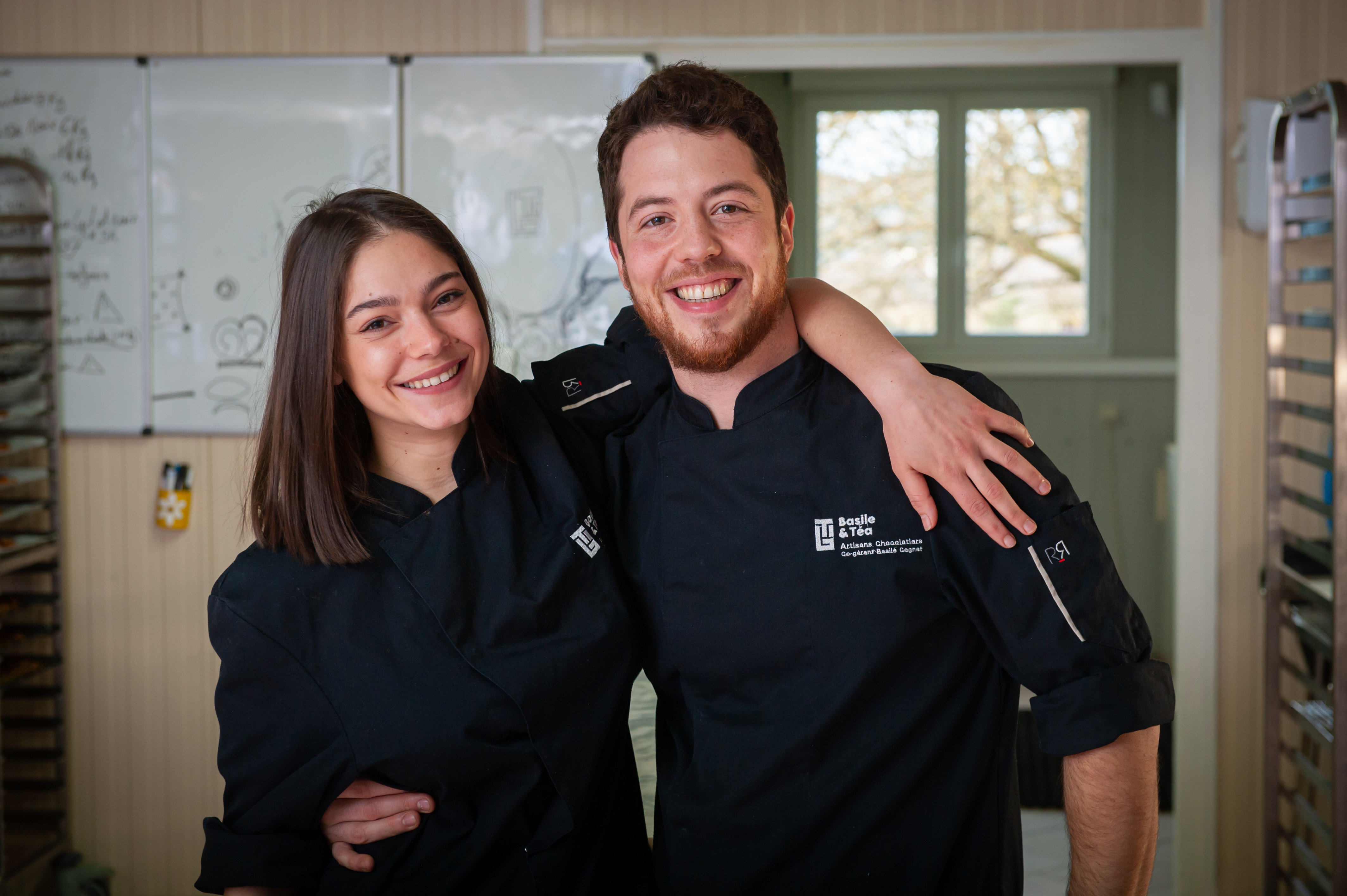 Comme un signe du destin, les deux jeunes artisans chocolatiers isérois se sont rencontrés les mains dans le chocolat. Ils ont décidé de partager leur vie, mais aussi de se lancer ensemble dans l’aventure entrepreneuriale en fondant Basile et Téa.